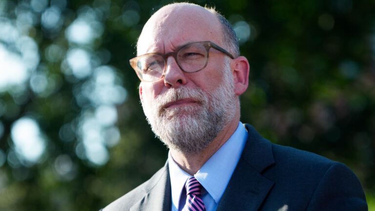Russell Vought, director of the Office of Management and Budget (OMB), speaks to members of the media outside the White House in Washington, DC, US, on Thursday, July 24, 2025.