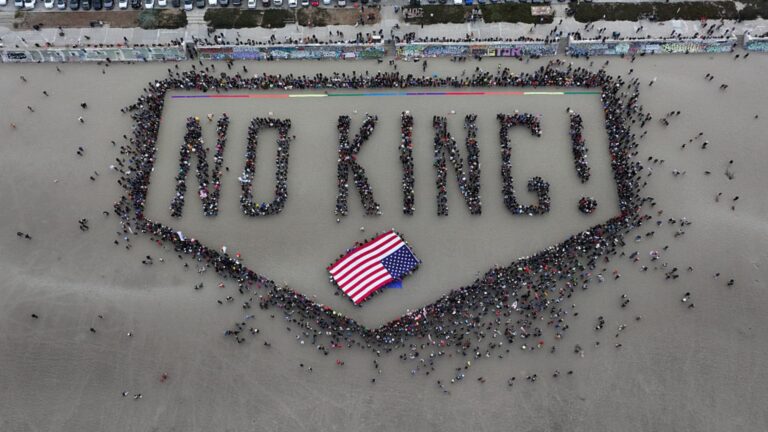 This is the third mass mobilization since Trump’s return to the White House and it is expected to be the largest. It comes against the backdrop of a government shutdown that not only has closed federal programs and services, but is testing the core balance of power as an aggressive executive confronts Congress and the courts in ways that organizers warn is a slide toward American authoritarianism.