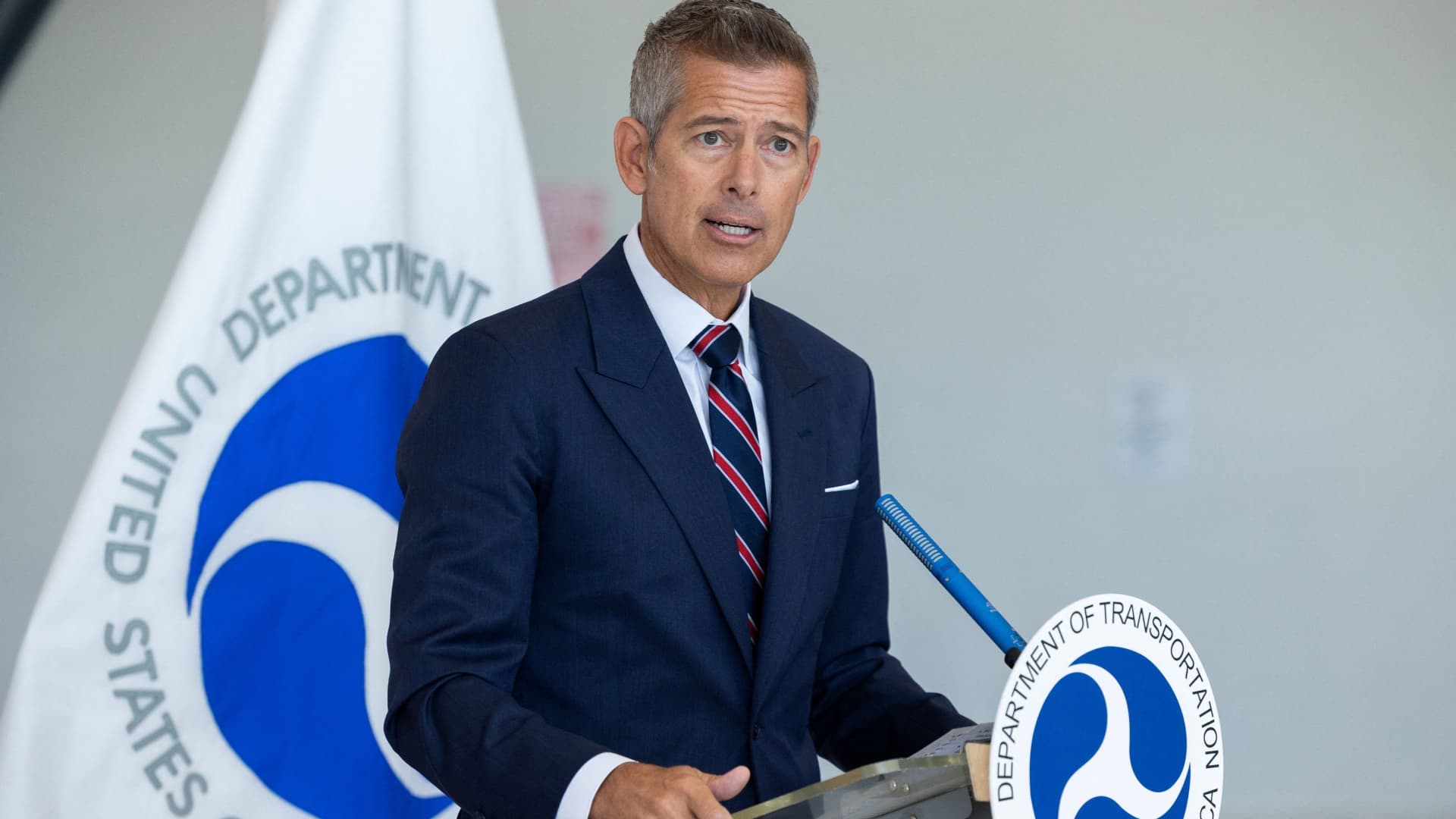 U.S. Transportation Secretary Sean Duffy speaks during a press conference to discuss the impact of the government shutdown on air safety workers and travel at Philadelphia International Airport in Philadelphia, Pennsylvania, U.S., October 24, 2025.
