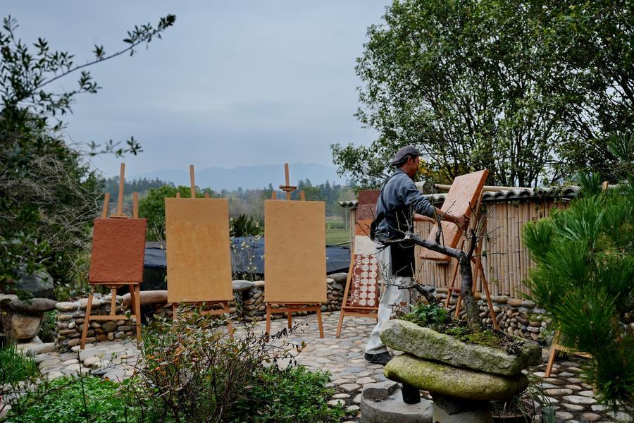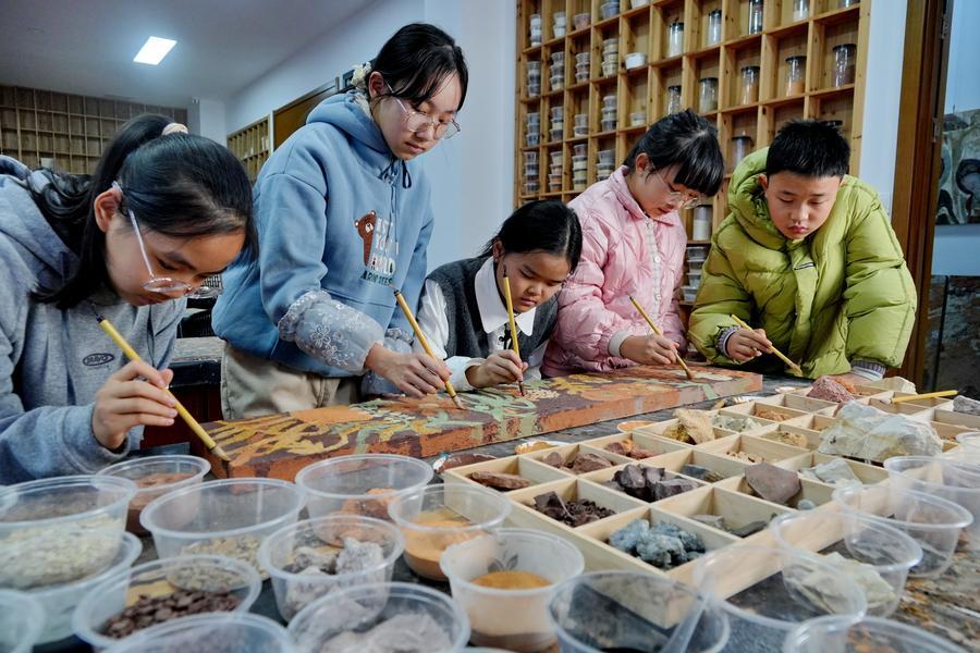 WUYISHAN, Dec. 23 (Xinhua) — Wuyishan boasts a wide range of colorful rock and soil, which serve as a natural palette for painting, giving rise to the distinctive Wuyi rock pigment art. Integrating modern artistic elements and techniques into tradition, Wuyi rock pigment painting is gradually becoming a unique cultural feature of Wuyishan.