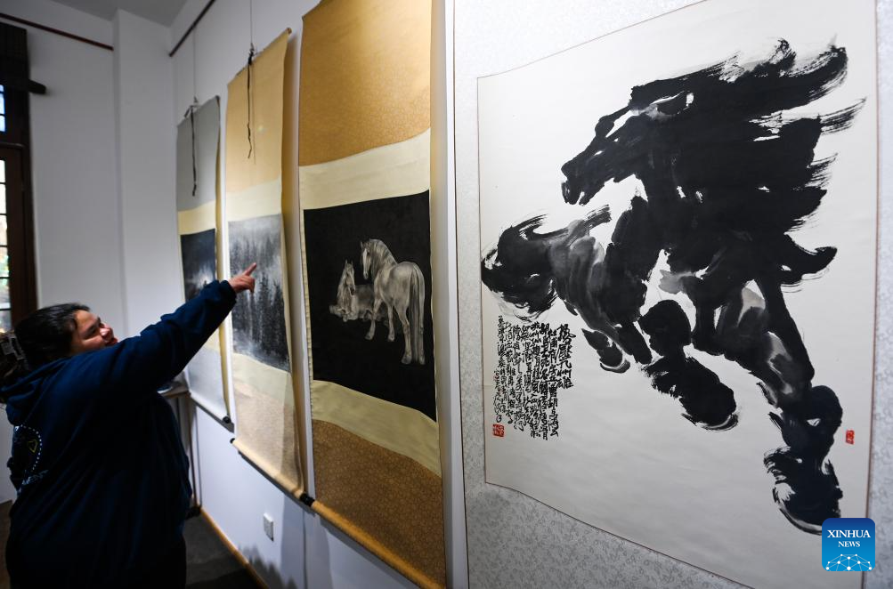 A visitor views a horse painting at an exhibition in north China’s Tianjin, Dec. 29, 2025. Various activities are held across China to celebrate the upcoming new year. (Xinhua/Zhao Zishuo)
