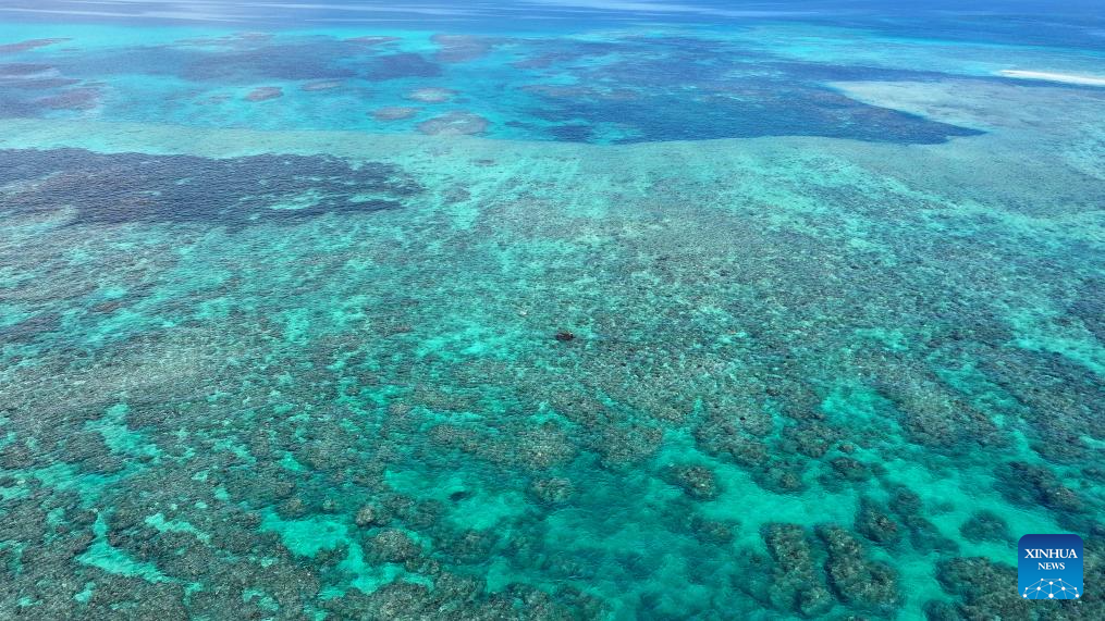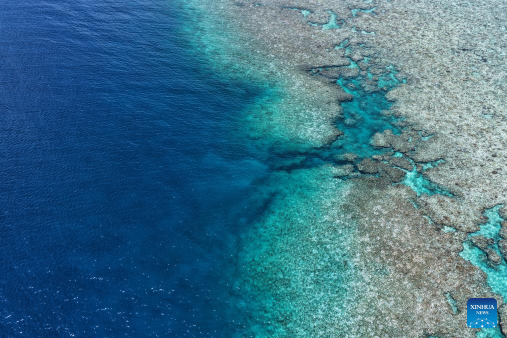 An aerial drone photo taken on Oct. 2, 2025 shows a view of the China’s Huangyan Dao national nature reserve in the South China Sea. (Xinhua)