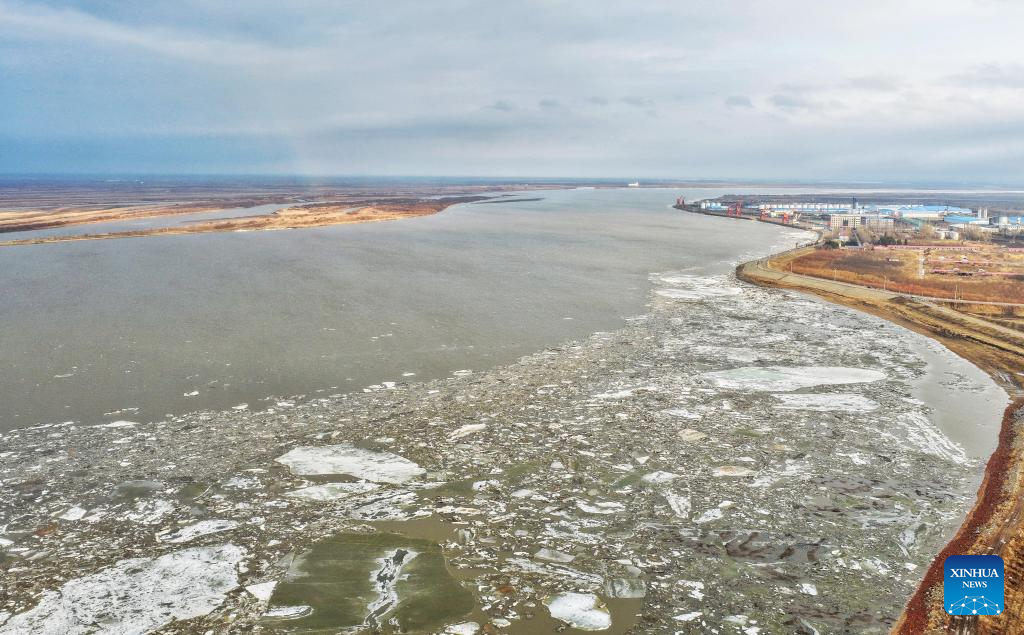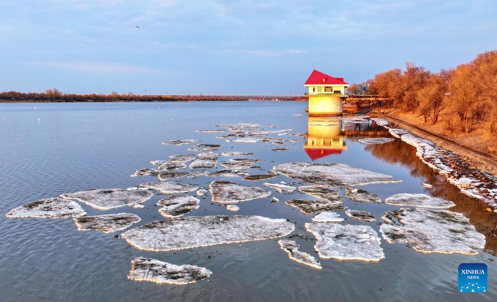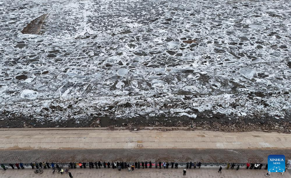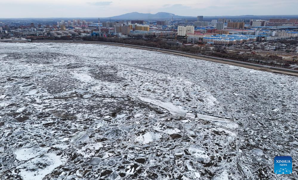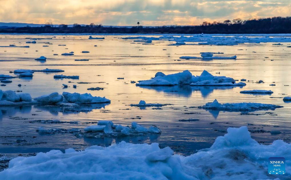 View of drift ice floating on surface of Heilongjiang River, Songhua River-Xinhua