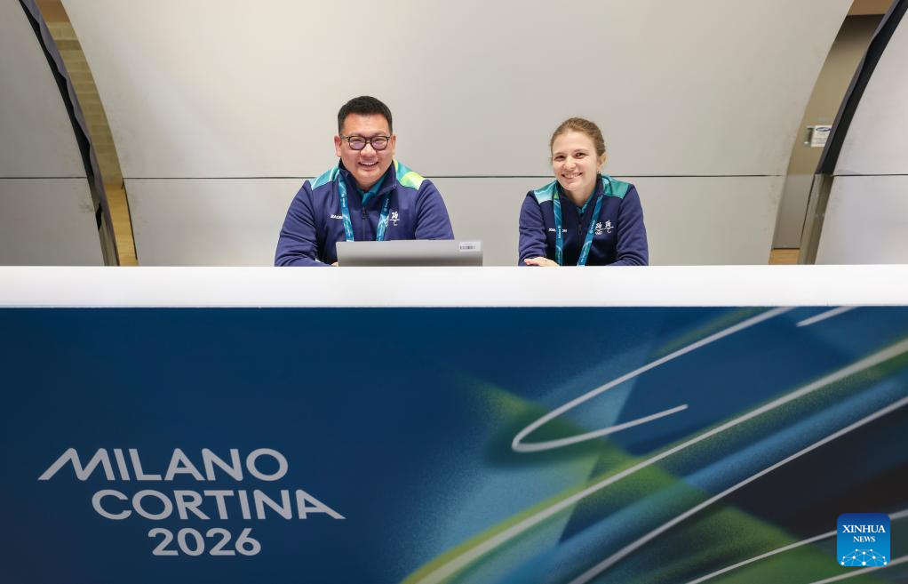 Staffs are seen at the main media center (MMC) of the Milan-Cortina 2026 Olympic Winter Games in Milan, Italy, Jan. 28, 2026. (Xinhua/Hu Xingyu)
