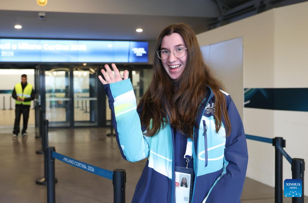A staff waves at the main media center (MMC) of the Milan-Cortina 2026 Olympic Winter Games in Milan, Italy, Jan. 28, 2026. (Xinhua/Hu Xingyu)