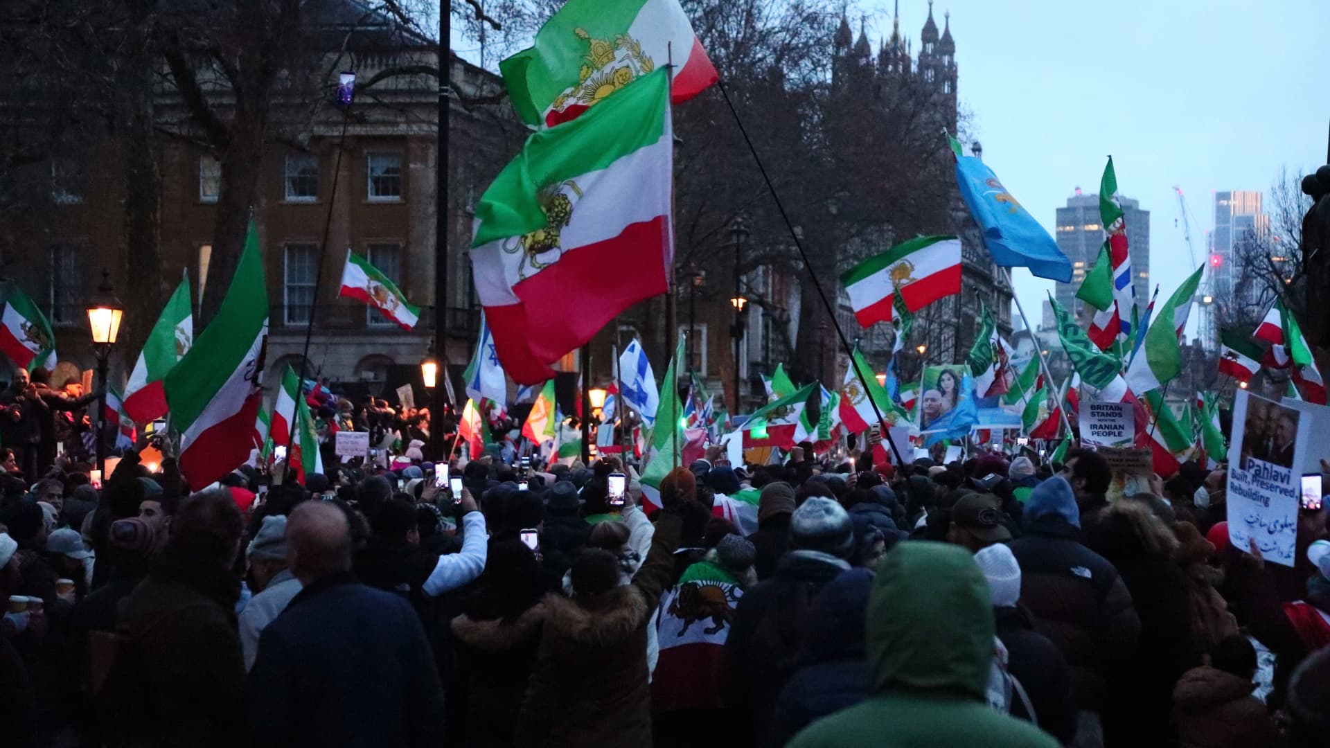 LONDON, ENGLAND – JANUARY 11: People take part in a rally in solidarity with protesters in Iran on January 11, 2026 in London, England.