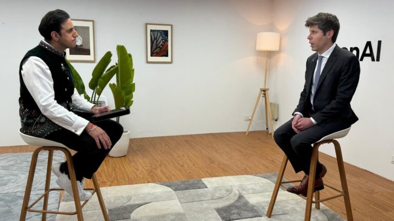 CNBC’s Arjun Kharpal sits down with OpenAI CEO Sam Altman at the AI Impact Summit. Photo: Yolande Chee