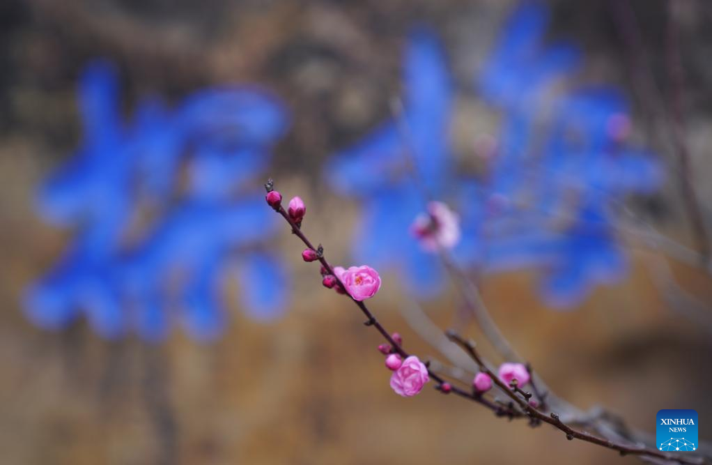 This photo taken on Jan. 6, 2026 shows plum flowers seen in Luoyang City, central China’s Henan Province.
