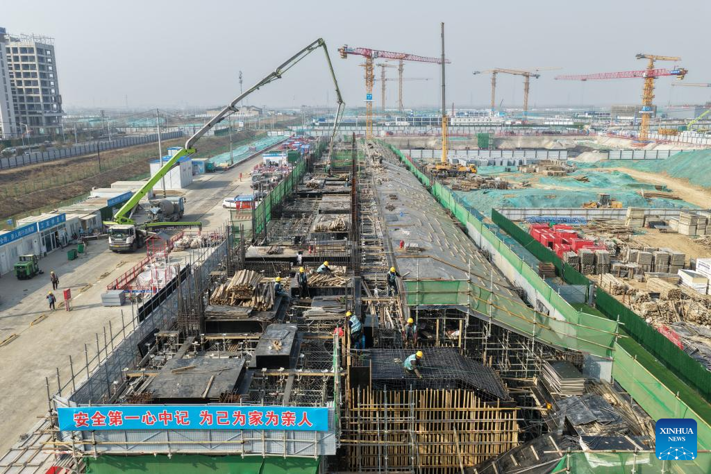 Staff members of China Construction Third Engineering Bureau Group Co., Ltd. work at the construction site of the headquarters of China Mineral Resources Group Ltd. in Xiong’an New Area, north China’s Hebei Province, March 25, 2026.