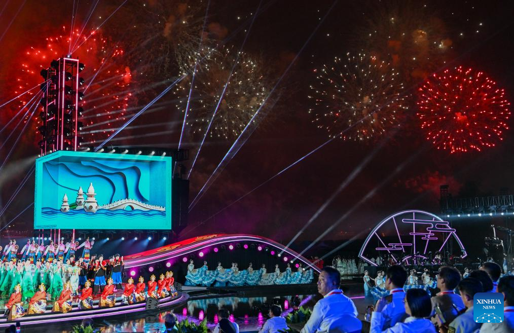 People watch a performance during the opening ceremony of the 2025 Yangtze River cultural and arts season in Wuhan, central China’s Hubei Province, Sept. 12, 2025. The opening ceremony of the 2025 Yangtze River cultural and arts season was held in Wuhan on Friday. The event will run from Sept. 12 to Oct. 30, featuring a range of activities including art exhibitions, film week, and music week. (Xinhua/Du Zixuan)
